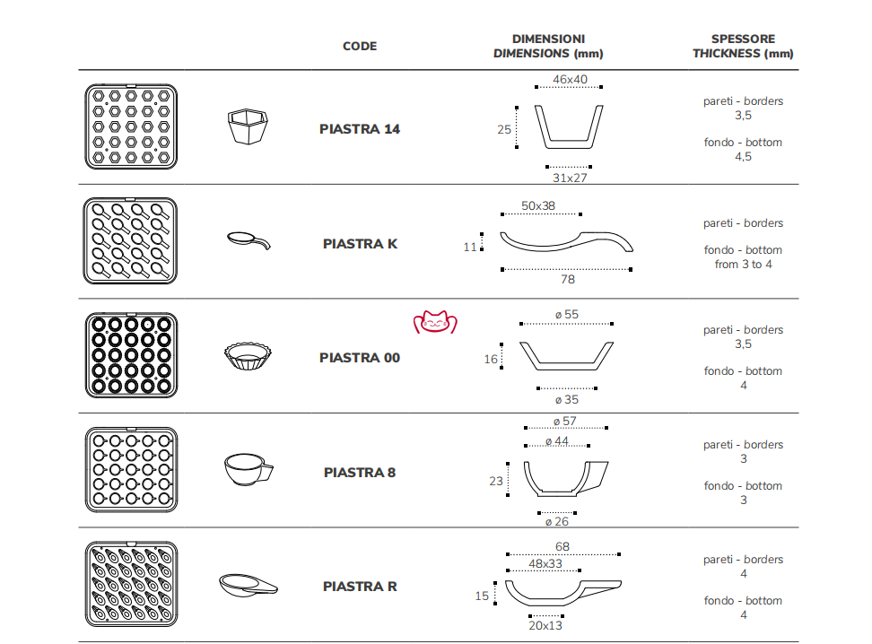 Cookmatic 采用“上下兩片烘盤配合”設(shè)計(jì),烘盤可更換,支持多種塔杯形狀與深度,甜品師可以在同一臺機(jī)器上快速切換產(chǎn)品線(如:迷你蛋撻、標(biāo)準(zhǔn)塔杯、咸味小派等),實(shí)現(xiàn)SKU擴(kuò)展且無需大量模具投資。