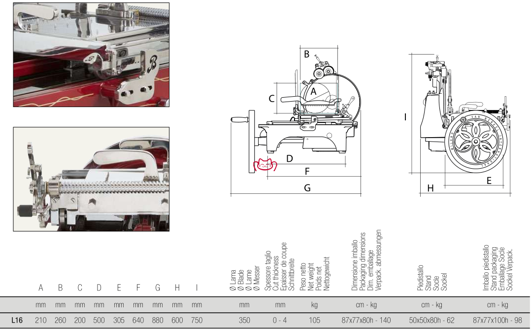 特征:L16采用噴漆鑄鐵制成,并采用鍍鉻鋼制成的細節(jié)(例如帶有序列號的數(shù)據(jù)銘牌,這一細節(jié)僅是最珍貴的藝術(shù)品才值得擁有),L16彰顯了卓越,代表了最出色的表現(xiàn)。精致的意大利制造。新型飛輪切片機L16采用經(jīng)典的Berkel紅色,并根據(jù)要求配備特色的鑄鐵底座,對Berkel風格進行了現(xiàn)代詮釋:體積小,精加工和持續(xù)出色的性能。在不懈追求完美的過程中,伯克爾??知道,只有將傳統(tǒng)與創(chuàng)新無縫融合,才能實現(xiàn)最先進的技術(shù):這是標志性魅力的延續(xù)唯一途徑,是神話的力量。