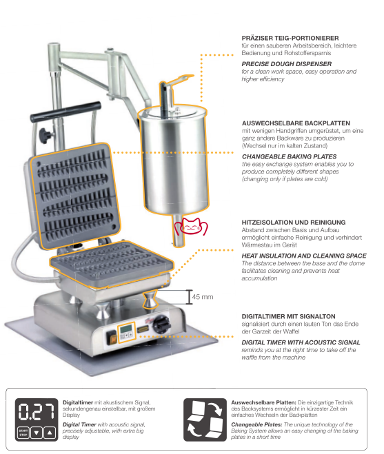 特征:擺動的分配器使烘烤華夫餅變得更加方便。 此外,它有助于減少浪費。 它看起來很專業(yè),可以幫助您省錢。