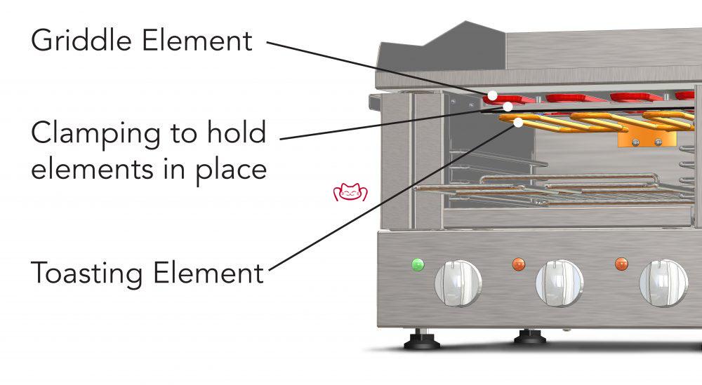 -雙元系統(tǒng)獨立控制烤盤功能和烤盤功能,為廚房工作人員提供最佳的烹飪控制。所有型號的烘烤室均設(shè)計為與電爐操作協(xié)同工作。 (注 GT480 吐司元件由 On/Off 開關(guān)控制)