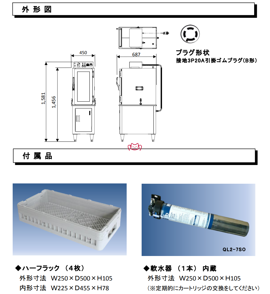 配件:半架 x 4,軟水器 x 1(內(nèi)置)
