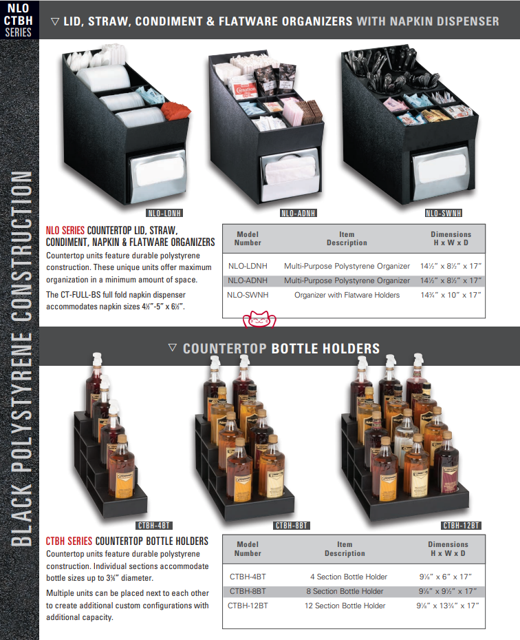 特征:  DLCO-5BT多功能組織者提供了一種簡(jiǎn)便的方法來(lái)組織杯子,蓋子和包裝調(diào)味品。 這六個(gè)部分的組織者提供了一個(gè)緊湊的足跡,可最大化空間。 具有耐用的聚苯乙烯結(jié)構(gòu)。