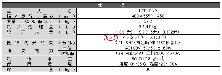 標(biāo)準(zhǔn)洗米時(shí)間:7.2升=3:42