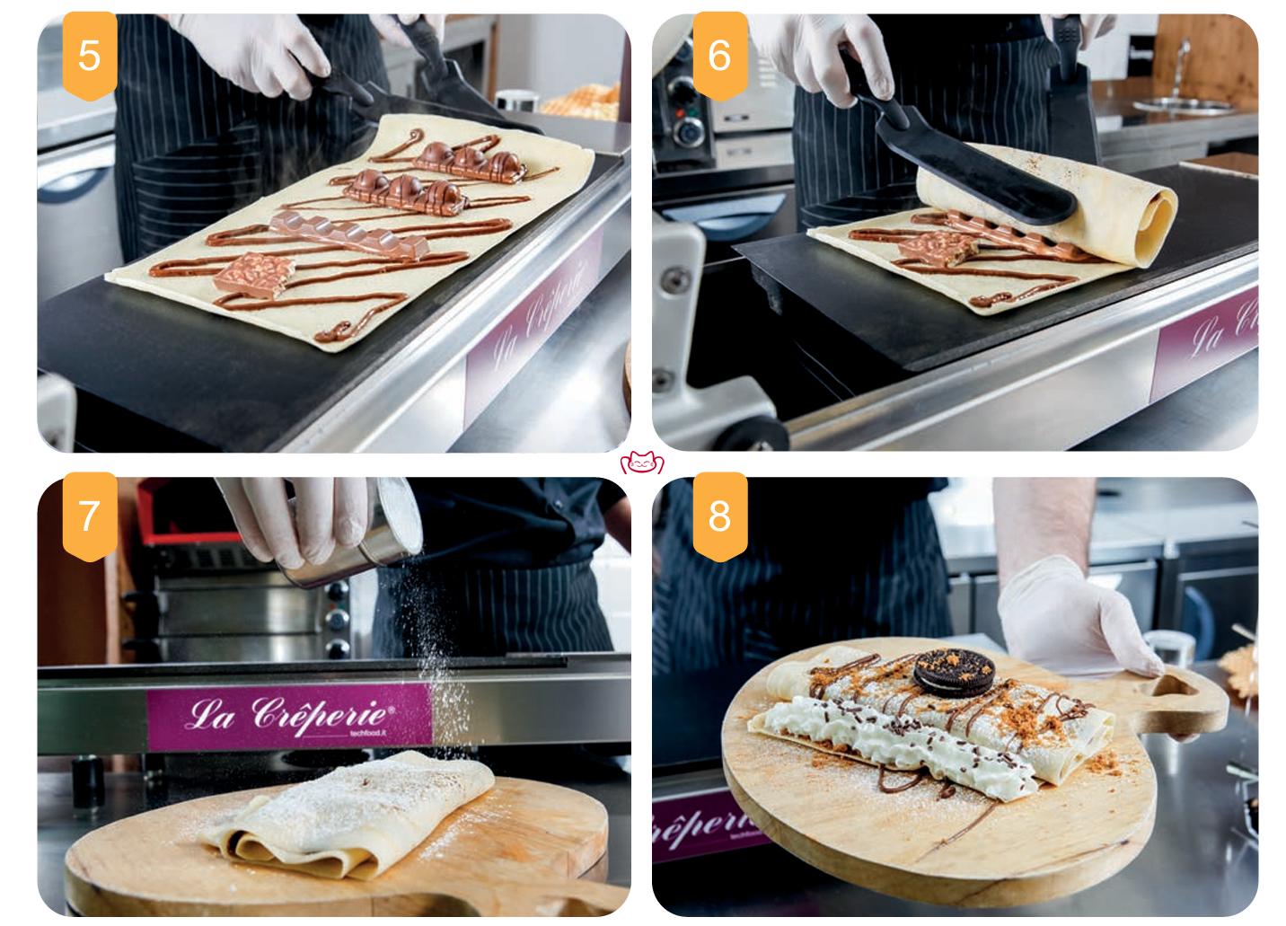 La Crêperie 有兩種尺寸可供選擇,并配有工具包。 它不涉及放置問題,因?yàn)樗恍枰惭b額外的柜臺或烹飪區(qū)。 盡管為可麗餅而生,但該系統(tǒng)允許您以同樣的簡單性和速度準(zhǔn)備其他食譜:烤寬面條、烤碎肉卷、testaroli lunigiani、來自摩德納的 borlenghi 和歡樂時(shí)光的最新時(shí)尚壽司可麗餅。La Crêperie 也非常適合生產(chǎn)“按米煎餅”,這是一種另類的美味創(chuàng)意。