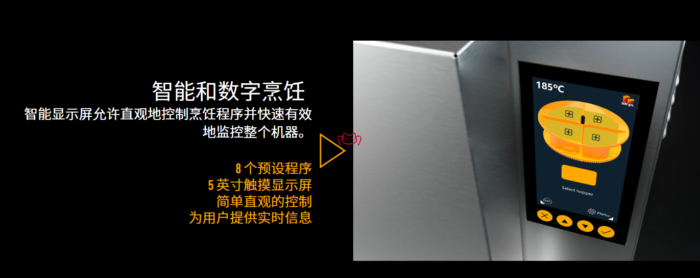 -自動化操作:設(shè)備的操作簡便,配有5寸觸摸屏,讓用戶可以輕松調(diào)控溫度、時間等參數(shù),確保每一批食品的質(zhì)量一致,減少人工操作的誤差和時間成本。