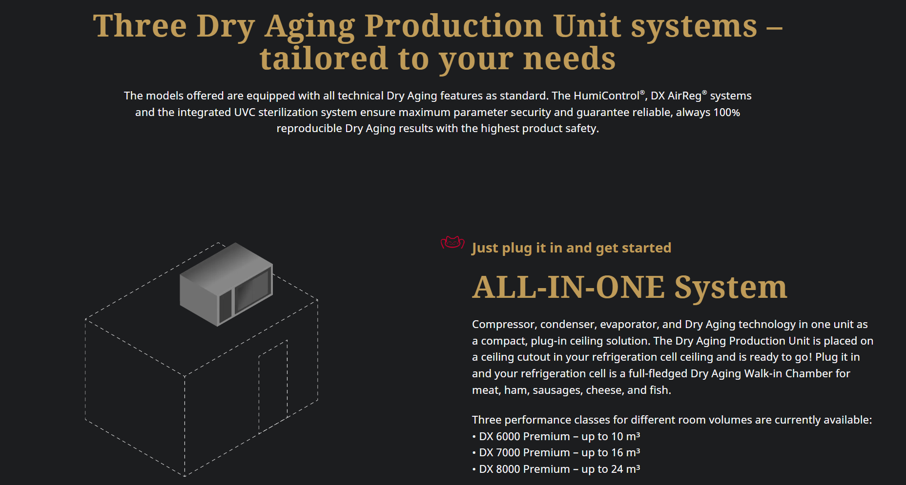 -先進的系統(tǒng):三種可用的干式熟化生產單元系統(tǒng)之一保證適合您。DRY AGER® 解決方案可以像您的要求一樣獨特。