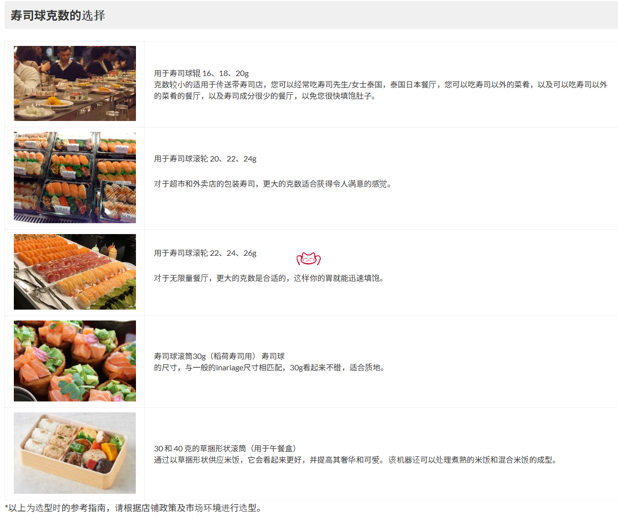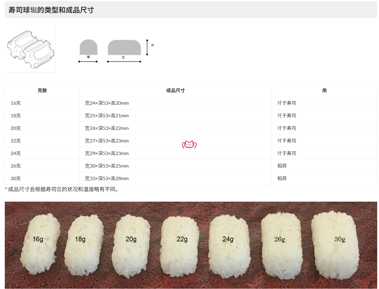(2)用于壽司球滾輪 20、22、24g:對(duì)于超市和外賣店的包裝壽司,更大的克數(shù)適合獲得令人滿意的感覺(jué)。