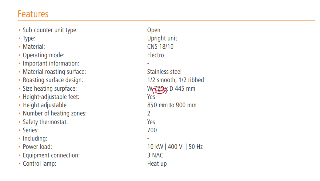 720×445 mm 的大面板設(shè)計(jì),半平面適用于煎蛋、蔬菜、海鮮,肋面則制造經(jīng)典烤紋,能在同一臺(tái)機(jī)器上實(shí)現(xiàn)多菜單并行,減少?gòu)N房設(shè)備采購(gòu)與維護(hù)成本。