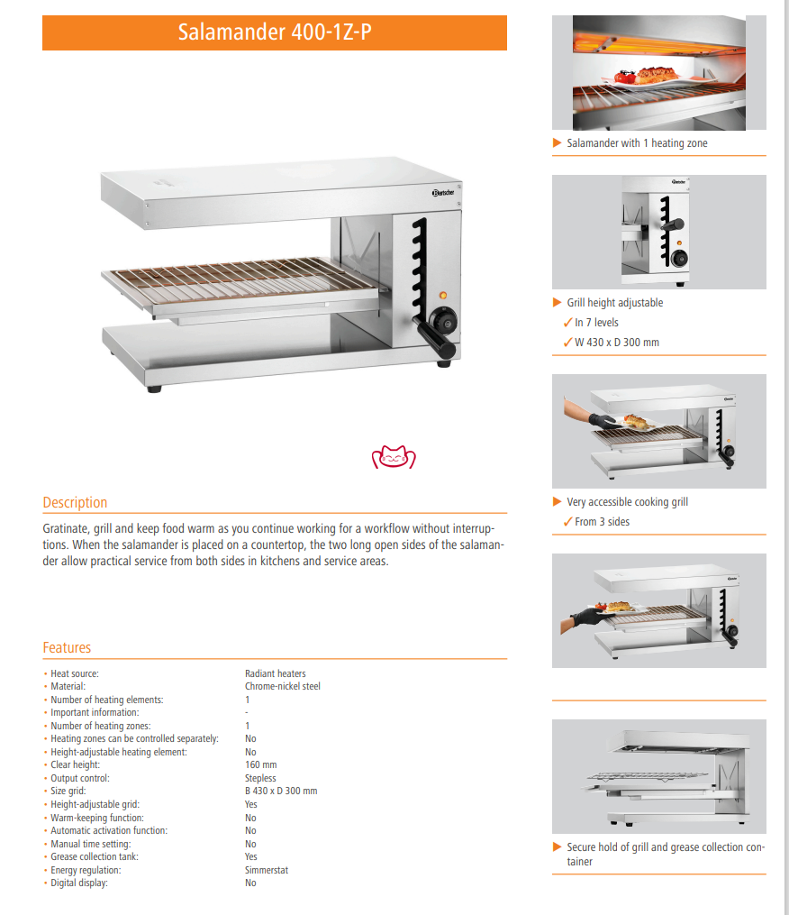 特征:烤制、燒烤和保溫食物,同時(shí)繼續(xù)工作,不間斷地完成工作流程。當(dāng)將烤盤放在臺(tái)面上時(shí),烤盤的兩側(cè)開口較長(zhǎng),方便從廚房和服務(wù)區(qū)兩側(cè)提供服務(wù)。