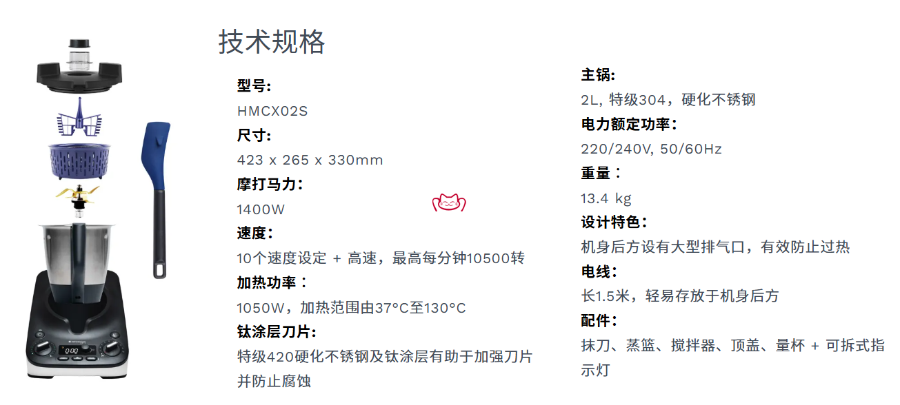 熱控與電機(jī)穩(wěn)定性:國(guó)產(chǎn)機(jī)多數(shù)只是“能把東西加熱并攪拌”,而 CHEF-X 提供精準(zhǔn)溫控(37–130°C)與 1400W 大功率電機(jī),實(shí)現(xiàn)從低溫慢煮到高溫乳化的一體化工藝,減少中間傳遞與人工誤差。