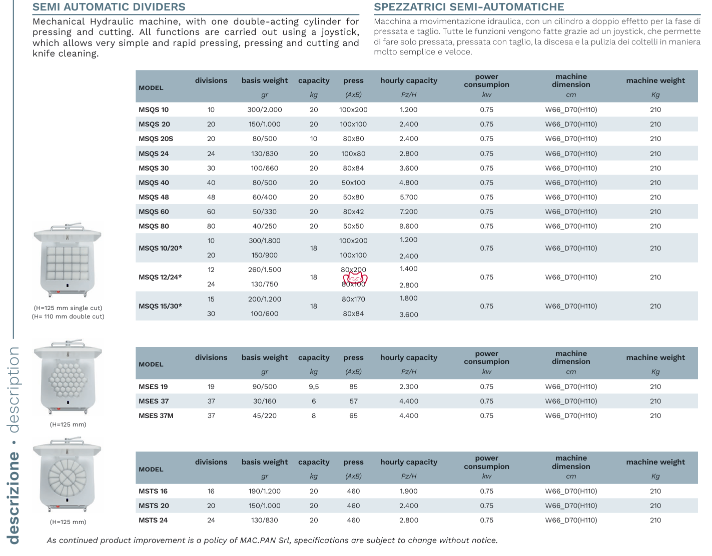 意大利MAC.PAN MSES37M半自動六邊形面團(tuán)分塊機(jī)