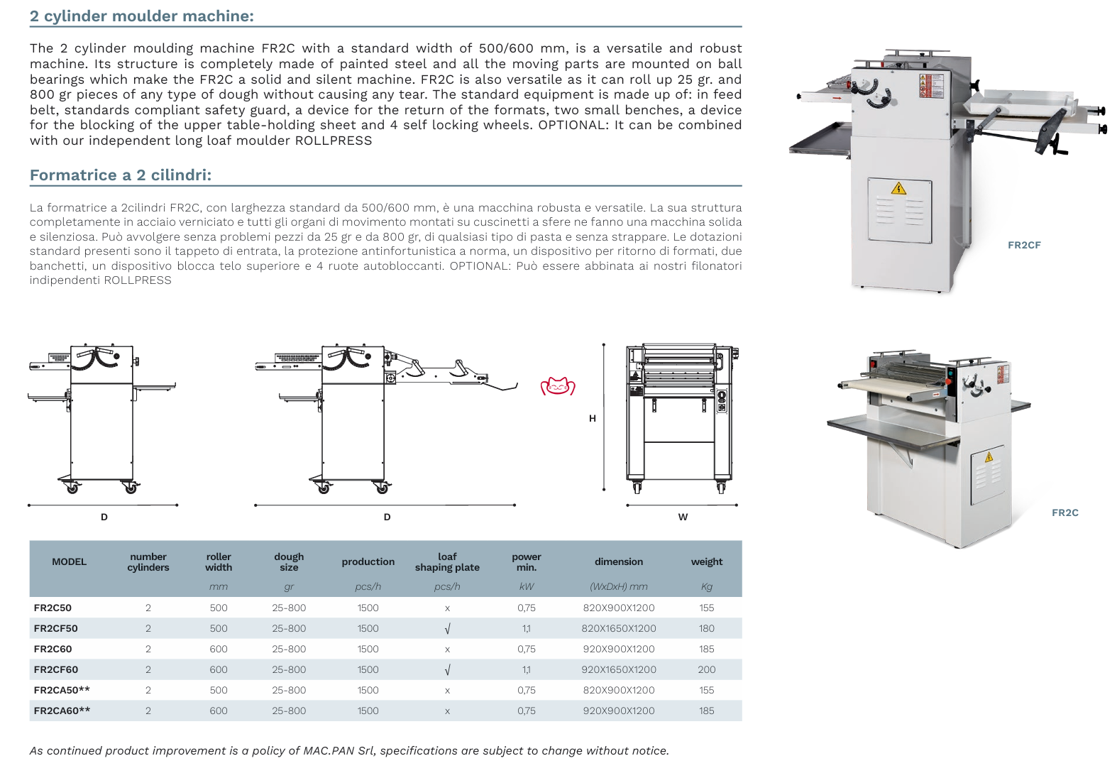 意大利MAC.PAN FR2C60雙滾筒面團(tuán)整形機(jī)