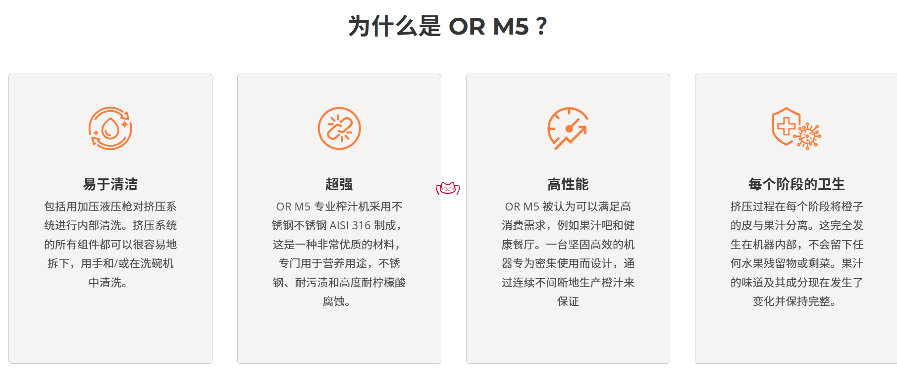 特征:OR M5 采用不銹鋼不銹鋼 inox 316L 制成,專為密集和重度使用而設(shè)計,是一款可靠且耐用的自動榨汁機(jī),。它是果汁吧、健康餐廳以及天然新鮮果汁需求量高的任何活動的理想選擇。堅固耐用的不銹鋼榨汁機(jī),廣泛應(yīng)用于歐洲和美國的加油站.