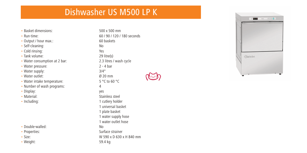 洗滌缸功率2.7KW,沖洗缸功率4.5KW,確保餐具潔凈無殘留。