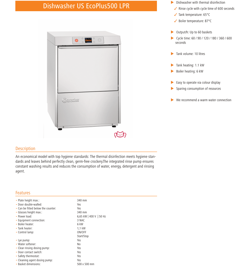 技術(shù)創(chuàng)新:與市面普通洗碗機相比,BARTSCHER 堅持全工序德國品質(zhì),沖洗缸6.0KW強力加熱,確保每次洗滌都達到DIN 10512及10534標(biāo)準(zhǔn),達到商用級“無菌潔凈”狀態(tài)。漂洗泵自動恒定水壓、水溫和流量,確保每一籃潔凈如新,并有效減少耗材浪費。再加上彈簧門設(shè)計、防濺結(jié)構(gòu)和耐腐蝕材料,使設(shè)備不僅性能穩(wěn)定,使用壽命也顯著優(yōu)于同類產(chǎn)品,后期維護更省心省力。