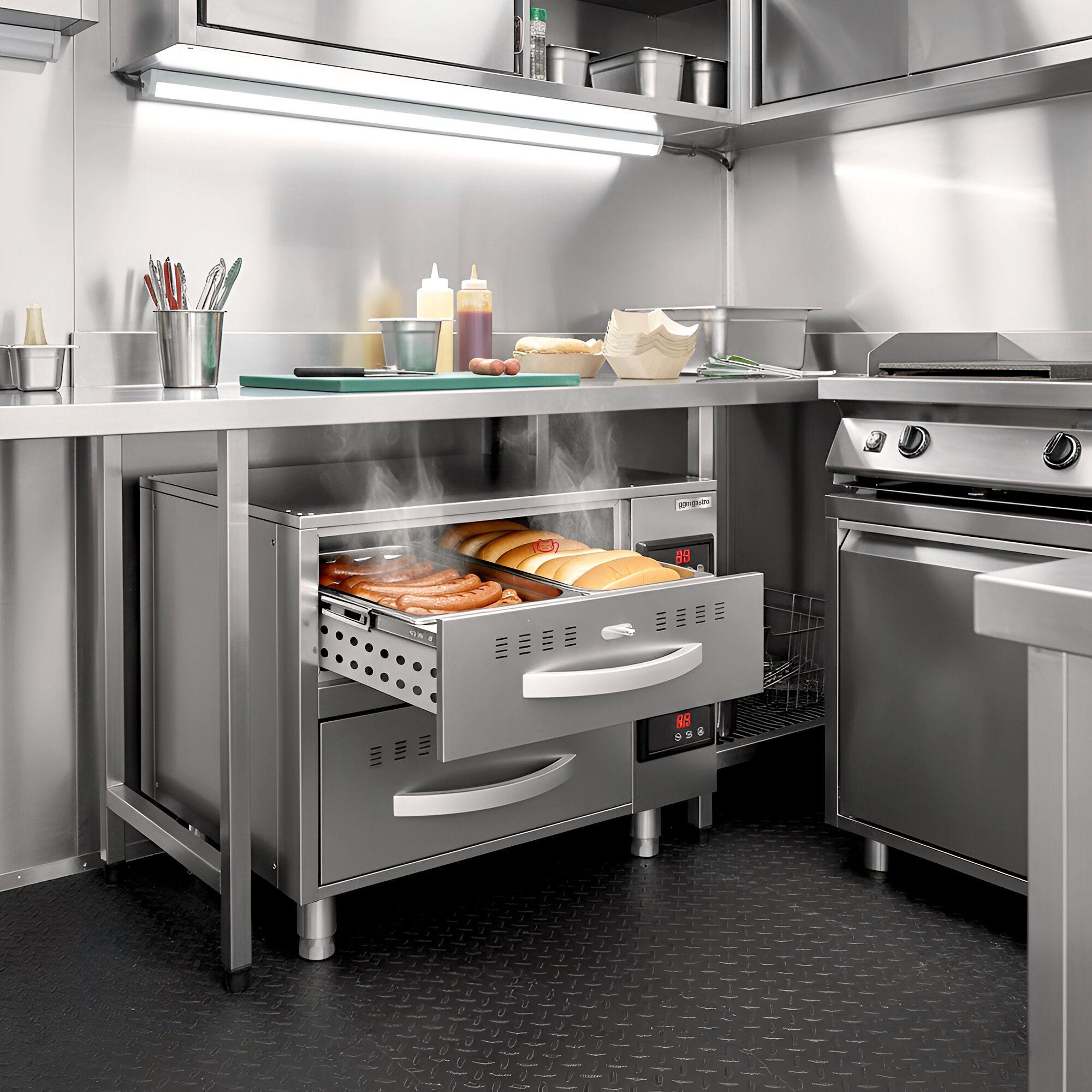 每個抽屜都能獨立設(shè)定溫度,高至 90°C,可同時保溫不同類型的餐品。