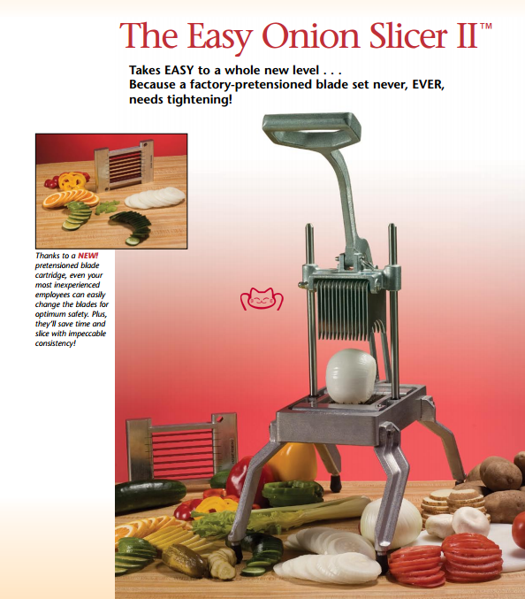 特征:Easy Onion Slicer II 是您需要的工具! 該切片機(jī)旨在同時(shí)容納水果和蔬菜,可以切開(kāi)番茄、土豆、洋蔥甚至檸檬,以減少您準(zhǔn)備客戶沙拉、三明治或其他美味菜肴所需的時(shí)間。
