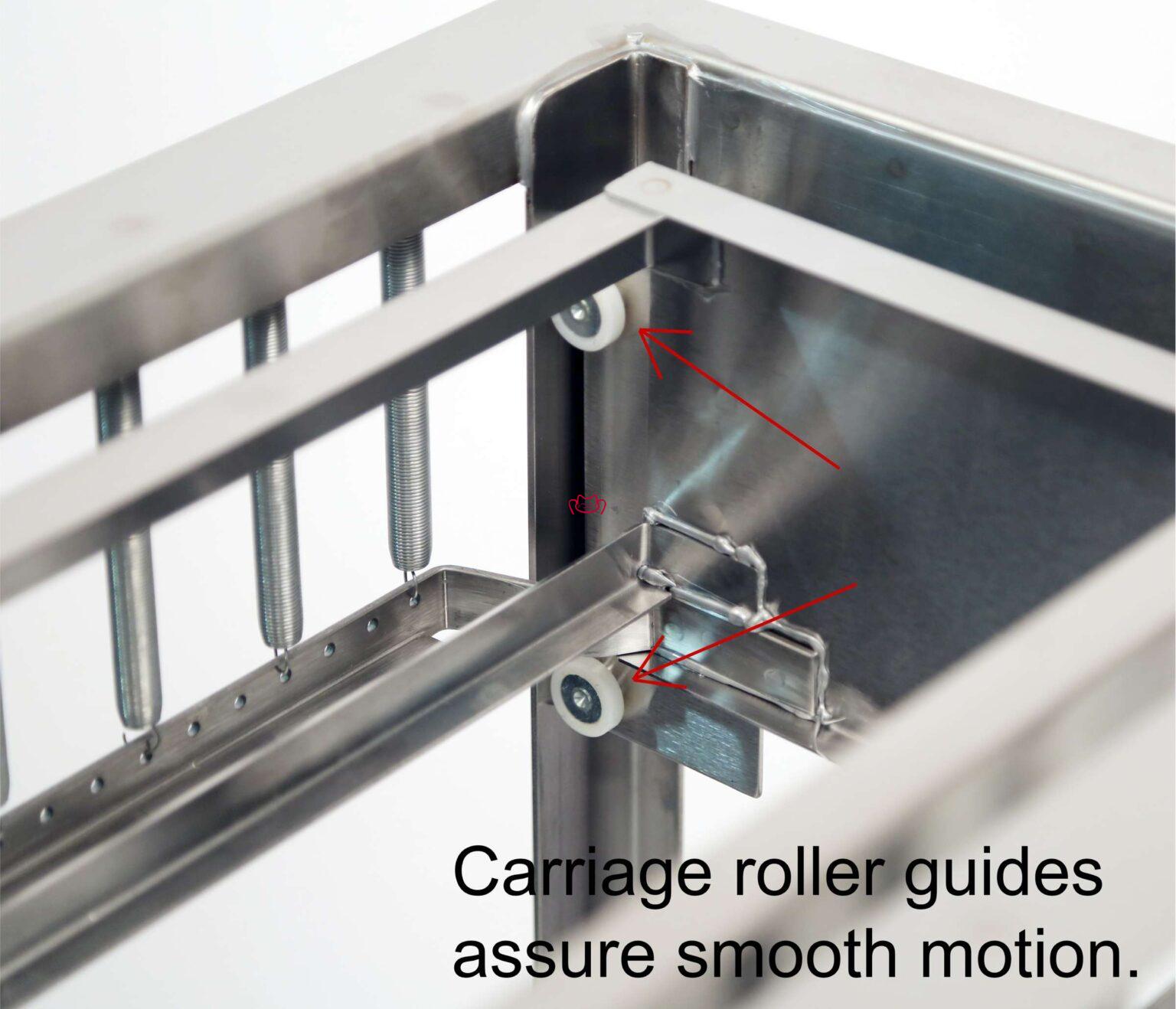 -角部滾輪導(dǎo)軌保證托架平穩(wěn)移動(dòng)。