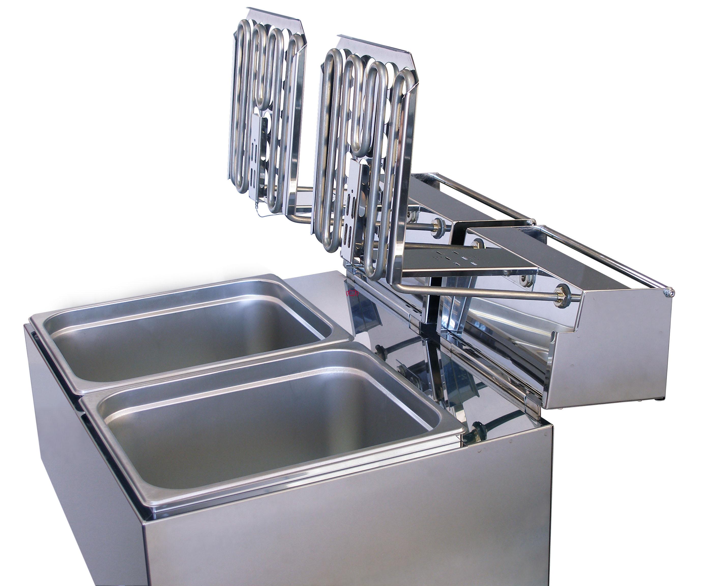 答:F25 設(shè)計(jì)有可輕松拆卸油槽和上翻式加熱元件,日常清潔只需將油槽抽出、過濾殘?jiān)⒉潦茫軝z時(shí)再拆開加熱件檢查,整體工時(shí)低于傳統(tǒng)固定式炸爐。