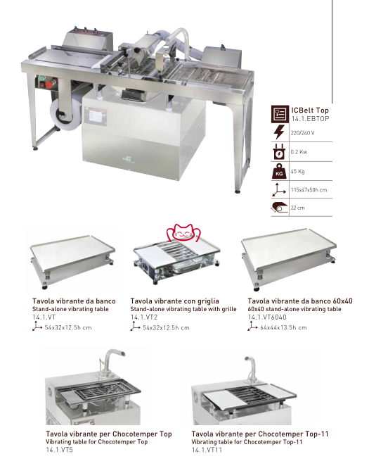 此外,Chocotemper Top 11 還可選配專用振動臺,用于模具內(nèi)巧克力的高效處理。