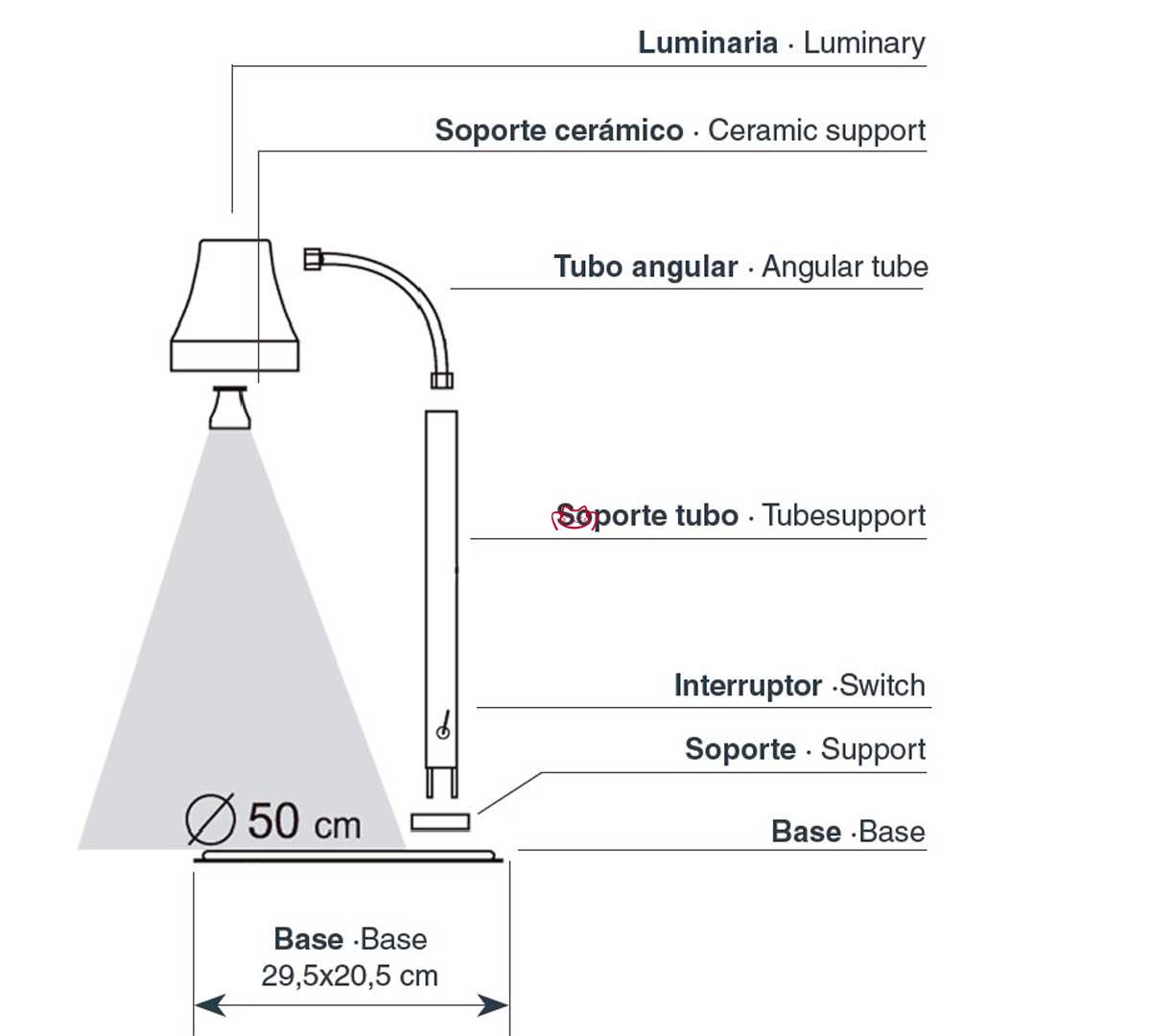 -建議將燈與餐具保持 50 - 60 厘米的距離。